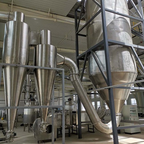 Vật liệu lỏng được bơm vào thông qua bơm màng.Vật liệu lỏng có thể được nguyên tử hóa thành những giọt nhỏ.Sau đó, nó tập hợp với không khí nóng rơi ra.Hầu hết các phần nguyên liệu dạng bột sẽ được thu gom từ đầu ra của đáy tháp chính.Đối với bột mịn, chúng tôi sẽ tiếp tục thu gom bằng máy tách xyclon và túi vải lọc.